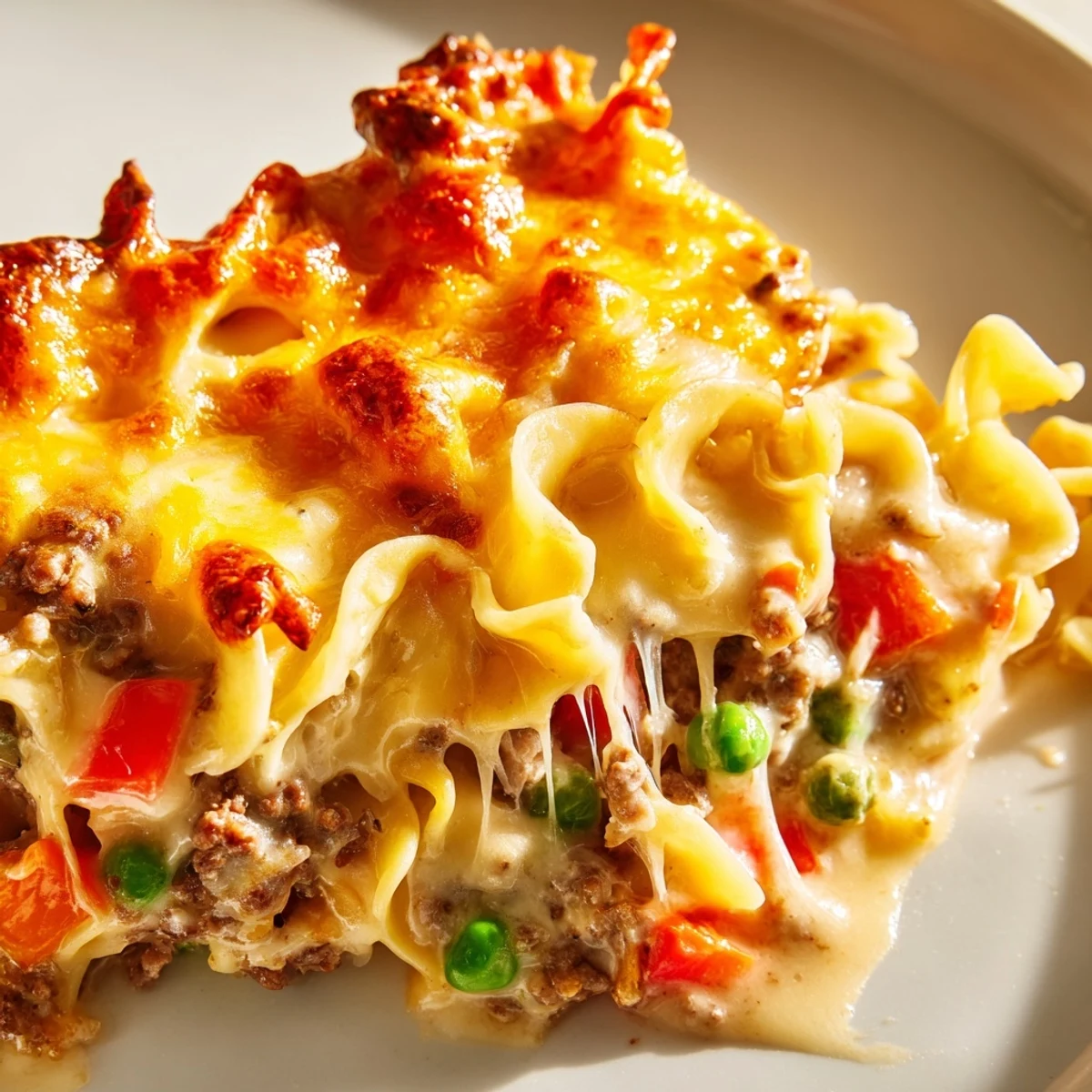 The combination of Italian herbs, paprika, and tomatoes adds depth to the beef, while sour cream creates a rich, tangy base that binds everything together. Optional vegetables like peas and red bell peppers can be folded in for extra nutrition and color.