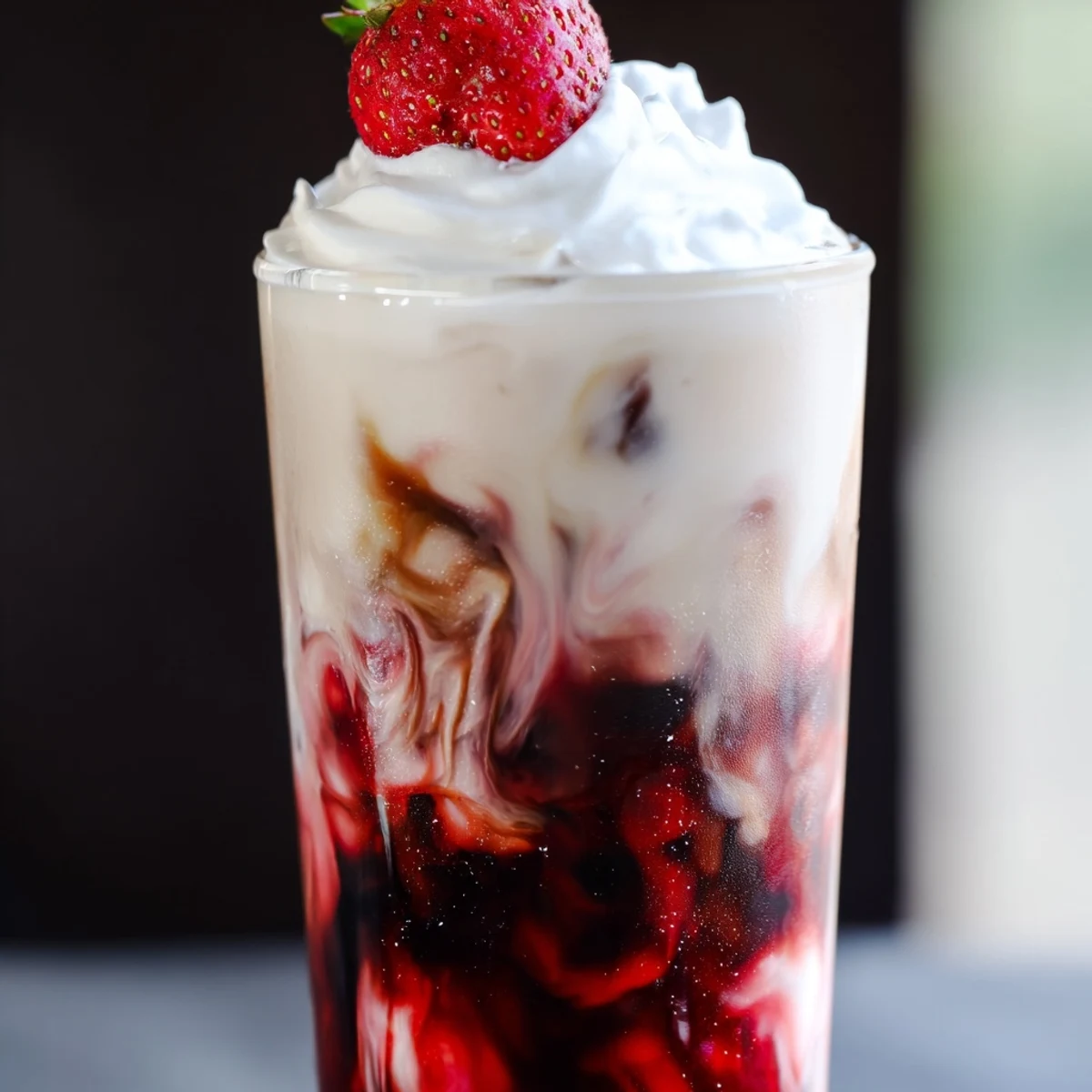 This refreshing chilled beverage combines sweet strawberry puree with creamy milk and cold brewed espresso. Ready in just 10 minutes, it creates a beautifully marbled drink perfect for sweltering summer days. The homemade strawberry base uses fresh berries simmered with sugar, then blended until smooth and strained for a seedless texture. Heavy cream adds richness while cold espresso provides the perfect coffee contrast. Top with whipped cream and fresh strawberry slices for an indulgent finish.
